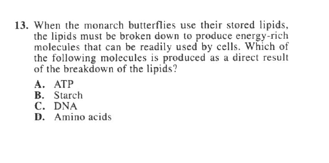 Another thing to note about the order of questions in the science studies is that the questions that show up toward the end will generally be more difficult. The last question or two of each study will generally be significantly more complex than the other questions. Oftentimes, the last questions will be very broad, requiring you to apply what you’ve learned from the study to an outside source; other times this question will require a small amount of outside knowledge in order to answer it correctly. Here is the last question in the study about monarch butterflies: